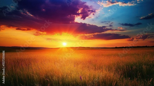 A vibrant sunset over a golden field, showcasing nature's beauty.