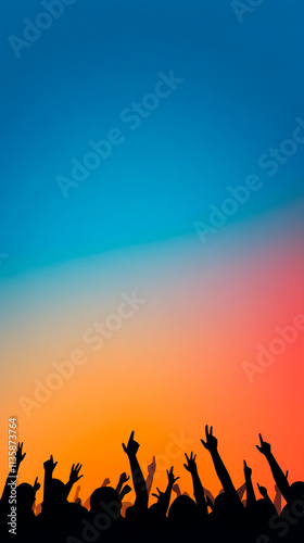 A vibrant sunset silhouette of raised hands, symbolizing celebration, unity, and joy against a colorful sky.