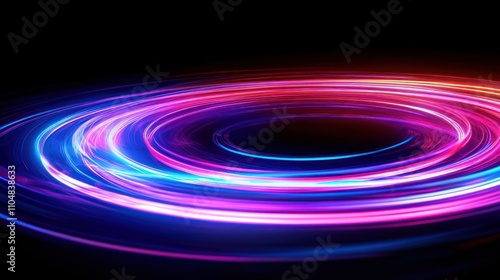 A vibrant swirl of colorful light against a black background, creating a dynamic visual effect.