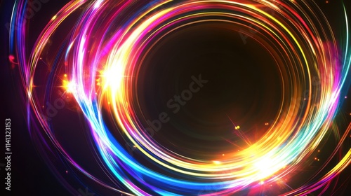 A vibrant swirl of colorful lights creates an energetic, abstract display on a dark background.