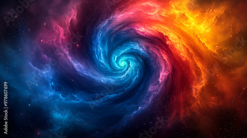 A vibrant swirl of colors in the cosmos, blending blues, oranges, and reds, representing the beauty of the universe.