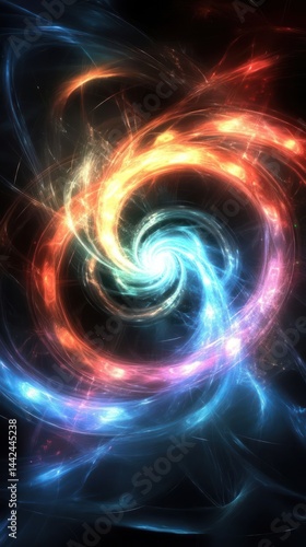 A vibrant, swirling cosmic design featuring bright colors and abstract patterns.