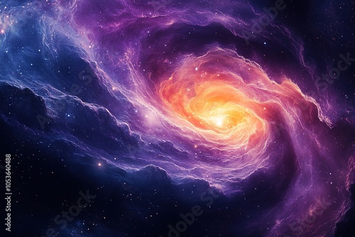 A vibrant, swirling nebula with a bright core, surrounded by a field of stars.