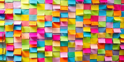 A vibrant tapestry of adhesive notes in various hues, adorning a smooth surface, a visual representation of ideas, reminders, and creative expressions