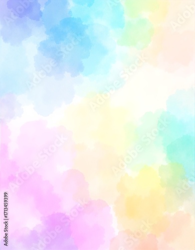 A vibrant watercolor background featuring soft, fluffy clouds in various shades of blue, pink, and lavender, creating a dreamy, serene atmosphere.