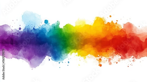 A vibrant watercolor splash featuring a gradient of colors from purple to red.