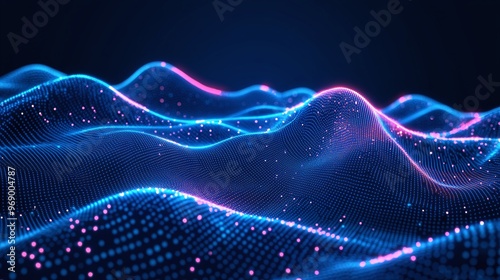 A vibrant wave of glowing particles creates a stunning visual in blue and pink tones, perfect for digital backgrounds.