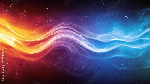 A vibrant wave of orange and blue light swirls together against a starry background, creating a dynamic and mesmerizing visual effect.