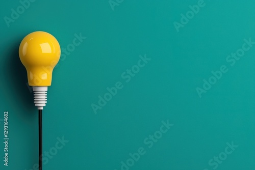 A vibrant yellow light bulb hanging against a teal wall, representing creativity.