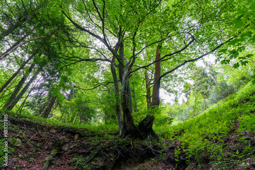 A view into a Bavarian forest while hiking though the Chiemgau area
