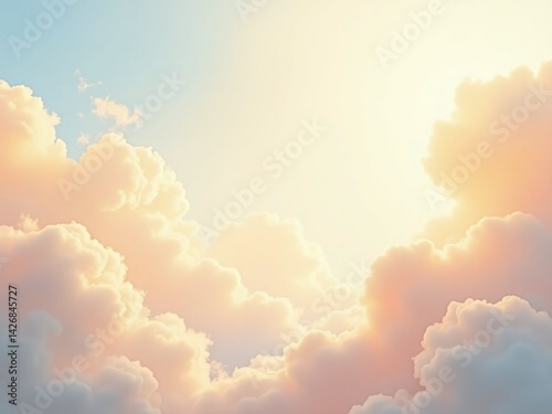 A view of fluffy clouds in a pastel colored sky at sunrise