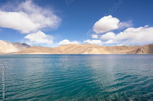 A view of Pangong Lake in Ladakh. Pangong lake or Pangong Tso It's one of the world's highest saltwater lakes.
