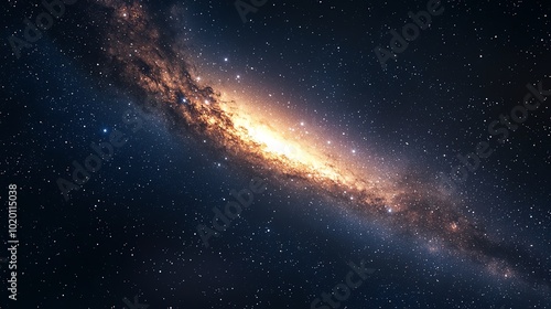 A view of the Milky Way from deep space, showing its spiral arms filled with glowing stars