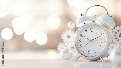 A vintage alarm clock surrounded by gears, symbolizing time and productivity.