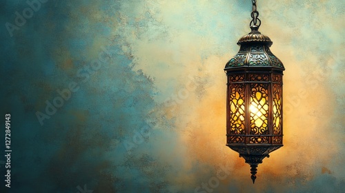 A vintage ornate lantern with stained glass panels glowing warmly, perfect for events like weddings and celebrations, adding a touch of elegance and retro charm.