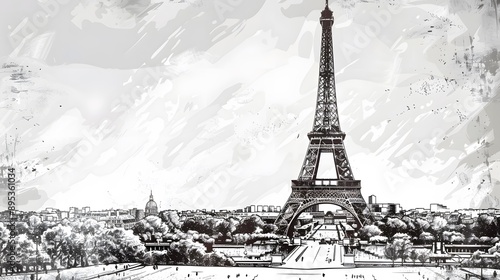 A vintageinspired illustration of the Eiffel Tower against a textured background