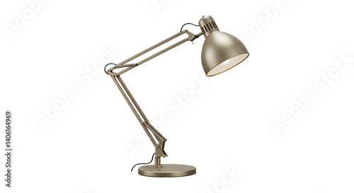 A vintage-style adjustable desk lamp with an articulated arm and a metallic finish on a black backdrop, providing focused lighting.