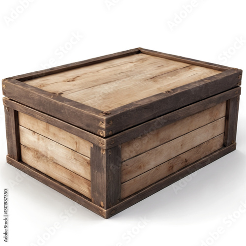 A vintage-style wooden box, aged and weathered, with intricate carvings and a rustic charm, set against a transparent background.