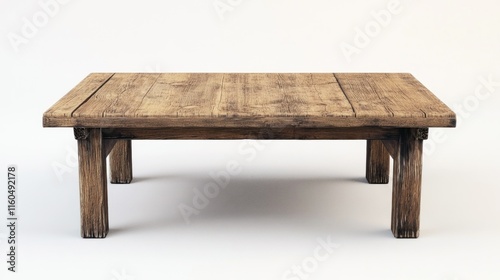 A vintage-style wooden table top with distressed edges and textured grain, set on a white background for a classic aesthetic.
