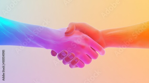 A virtual handshake with a smooth gradation light color background, representing modern digital interactions and professional partnerships