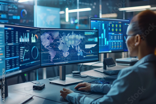 A virtual screen. Business strategy, data analysis technology, and financial growth idea.