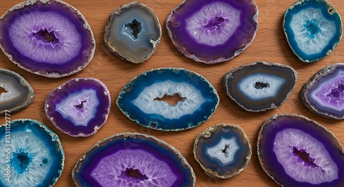 A visionary leader embracing adaptability, shaping the future with flexibility and insight, depicted through the intricate layers of geode stones in vibrant hues The harmonious blend of purple, blue