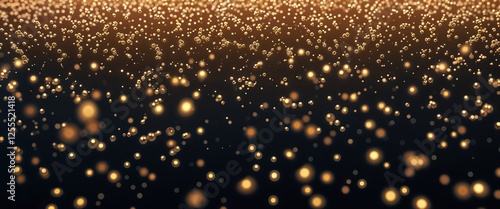 A visually rich abstract background features countless shimmering golden particles against a dark backdrop