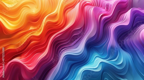 A visually striking 3D background featuring a wave-like pattern of undulating lines that create a sense of depth and movement. The vibrant colors and smooth gradients enhance the illusion, making it