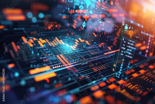 A visually striking depiction of the cryptocurrency market, featuring hightech graphics and dynamic data visualizations
