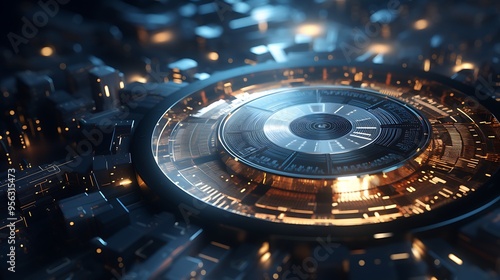 A visually striking representation of digital coins in sharp focus on an advanced digital display, signifying the advancement of financial technologies.