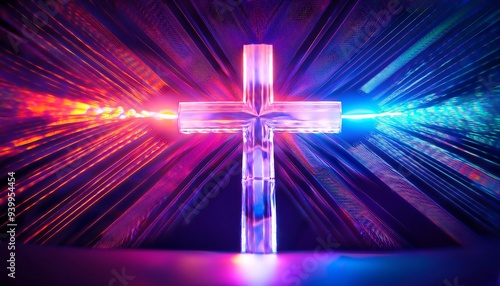 A vivid and dynamic illustration of a Christian cross set against a vibrant, colorful background.
