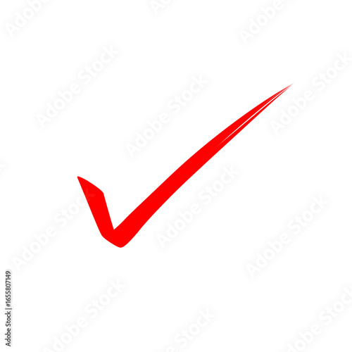 A vivid crimson checkmark symbolizing success confirmation and accuracy on transparent background