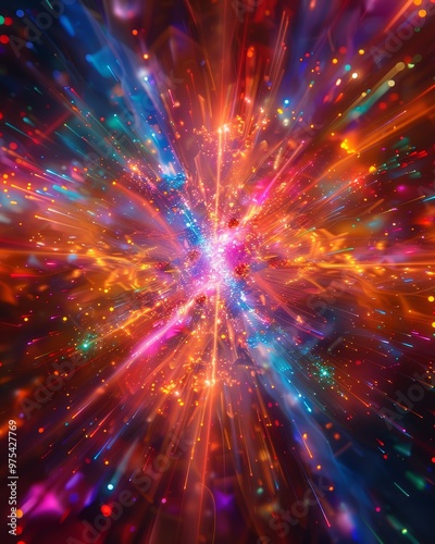 A vivid explosion of colors and light creating a mesmerizing cosmic effect, ideal for backgrounds and designs.
