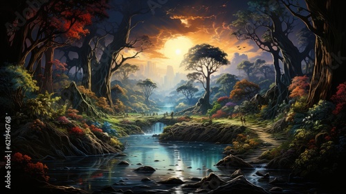 A vivid, hyper-realistic image of a lush, thriving rainforest untouched by human hands generative ai