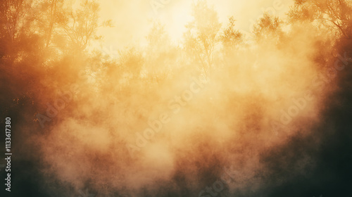 A vivid natural scene showcasing a forest under the effects of the greenhouse effect, with trees releasing misty vapors into a glowing, hazy atmosphere