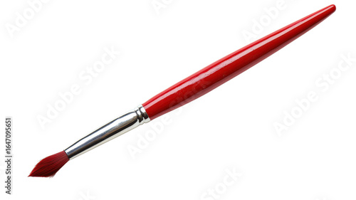 A vivid red paintbrush rests on a surface, showcasing its detail-oriented design perfect for crafts and painting