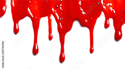 A Vivid, Rich Red Sauce Flows Down, Emphasizing Its Thick, Glossy Texture Against a White Backdrop