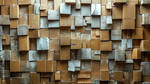 A Wall Constructed of Numerous Discarded Cardboard Boxes