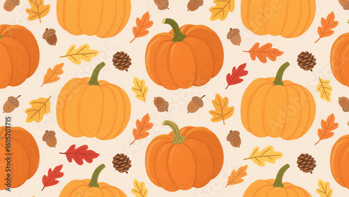 A warm autumn-themed pattern featuring hand-drawn pumpkins in rich orange hues with green stems. Halloween Costumes, Halloween Background, Happy Halloween