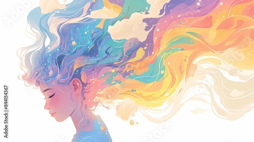 A watercolor embrace of dreams and reality intertwines, where watercolor waves in the shape of a human head blur the lines between the tangible and the intangible