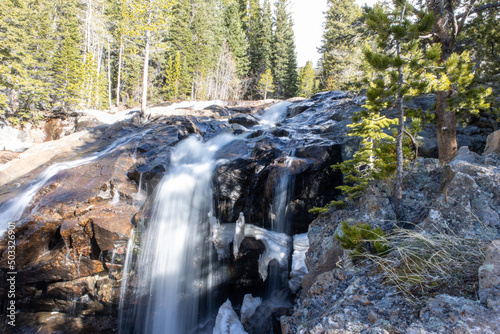 A waterfall by a tree in the Rocky Mountains of Colorado near Nederland