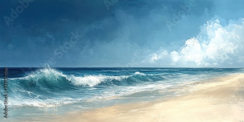 A Wave Breaking on a Sandy Beach with a Cloudy Sky