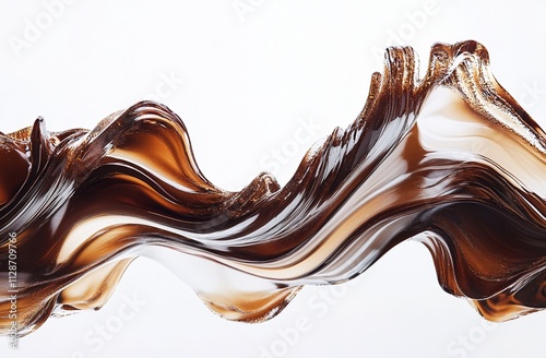 A wave of chocolate-colored liquid flowing on a white background