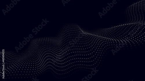 A wave of moving particles. Abstract 3d vector illustration on a dark background.