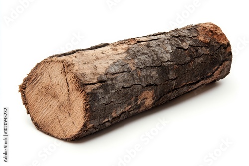 A weathered split log with natural bark, isolated on a crisp white background, ideal for crafting or DIY project imagery