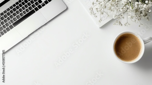 a wedding planners desk with notes and sketches, creative workspace, flat lay photography, isolated on white background