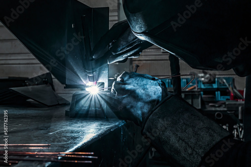 A welder in action in a workshop