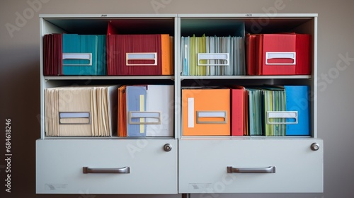 A well-organized filing cabinet with important documents and folders.