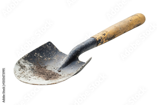 A well-used garden trowel resting on a clean surface, ready for planting and nurturing green life isolated on transparent background