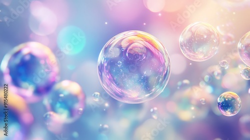 A whimsical abstract design featuring delicate soap bubbles with iridescent colors and soft lighting, creating a magical and sophisticated look.